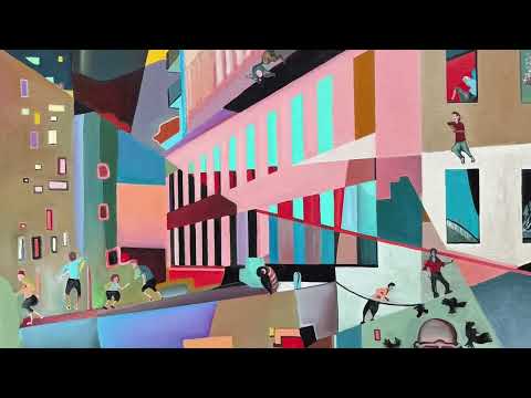 "Gravity Shift" reimagines the city as a whimsical playground, where architecture twists, figures defy gravity, and motion unfolds beyond conventional rules. Merging Cubism, Futurism, and abstraction, the painting portrays an ever-shifting urban environment, where fixed structures dissolve into fluidity, and the expected becomes unpredictable.